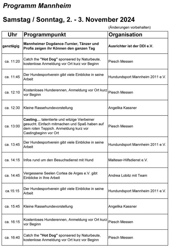 Zeitplan Mannheim